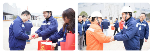 在寧鄉產業基地,每個人臉上都洋溢著幸福的微笑,各車間、廠區、部門的每位員工都收到了來自公司領導的新年祝福和開工紅包。公司領導與大家親切交談,并對春節期間堅守一線的同事表示衷心的感謝。新的一年,寧鄉產業基地全體員工將精益求精、變革創新,持續推動公司高質量發展。