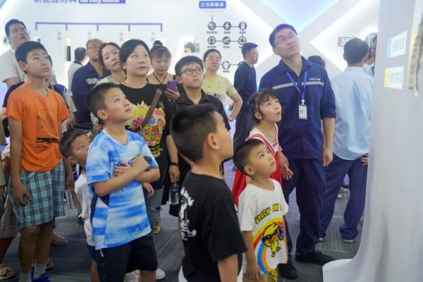 同日,中偉欽州產業基地周邊的30多位居民及小朋友、70多名欽州產業基地員工及子女,帶著對未來新能源、新材料、新科技的好奇和想象,來到現代化的中偉科技館,感受新能源科技的魅力。