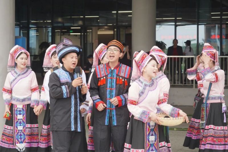 活動以山歌對唱的形式進行。參加對歌比賽的員工們,身著民族服飾熱情開唱。《好歌才》《什么水面打跟斗》《山歌好比春江水》......一首首洋洋盈耳、遏云繞梁的歌曲,引得大家紛紛駐足欣賞,現(xiàn)場氣氛熱鬧非凡。