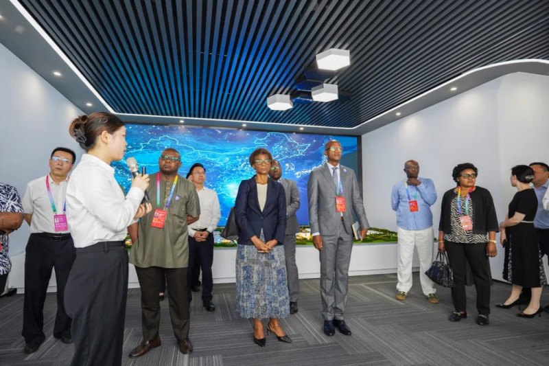 考察團一行先后參觀了中偉科技館、中偉全球研發中心等,詳細了解中偉發展歷程、科技創新以及全球產業布局等情況。在科技館,劉一重點向考察團介紹了中偉“資源開發-材料智造-全球循環”的新能源材料產業生態以及公司圍繞這一生態所作的的全球產業布局。代表團成員認真聆聽,對中偉的生態化、全球化發展表示由衷的贊賞,并不時就中偉在非洲產業布局和未來規劃進行問詢,探討深入合作的可能性。