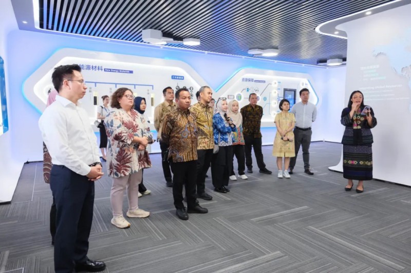 在中偉科技館和全球研發(fā)中心參觀通道,Tri Winarno局長一行對(duì)中偉的一體化產(chǎn)業(yè)以及研發(fā)體系表示出濃厚興趣。劉一介紹道,中偉股份已建立起“資源開發(fā)-材料智造-循環(huán)回收”的新能源材料產(chǎn)業(yè)生態(tài),結(jié)合行業(yè)領(lǐng)先的生產(chǎn)工藝,充分發(fā)揮資源的利用價(jià)值,助力產(chǎn)業(yè)可持續(xù)發(fā)展;同時(shí),中偉研發(fā)投入逐年提升,國際化產(chǎn)學(xué)研用體系不斷完善,通過行業(yè)超大規(guī)模研發(fā)車間推動(dòng)前端研發(fā)成果轉(zhuǎn)化落地,以科技創(chuàng)新驅(qū)動(dòng)公司高質(zhì)量發(fā)展。