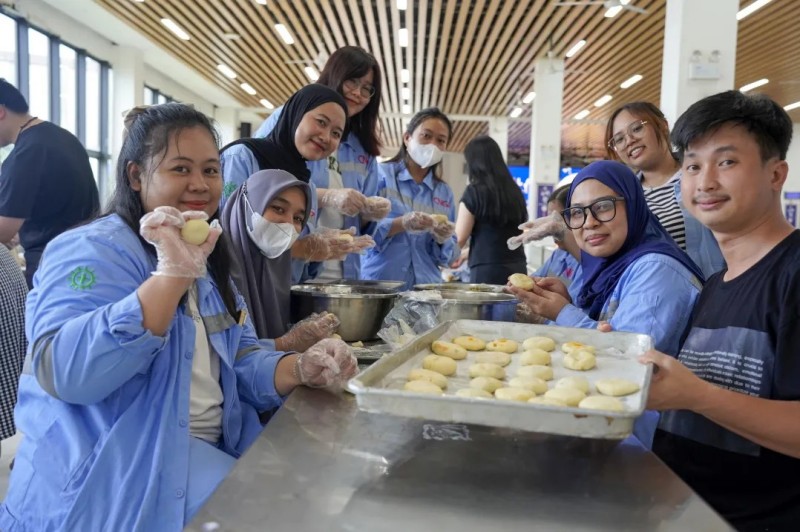 為了給大家創(chuàng)造美好的節(jié)日記憶,莫羅瓦利產(chǎn)業(yè)基地在中秋節(jié)當(dāng)天開展了“月餅制作活動(dòng)”。活動(dòng)現(xiàn)場(chǎng),中、印尼籍員工齊聚一堂,在專業(yè)廚師的指導(dǎo)下共同制作專屬創(chuàng)意月餅。大家在交流與協(xié)作中體驗(yàn)手作的樂(lè)趣,一塊塊月餅不僅承載著節(jié)日的甜蜜,更成為連接不同文化背景員工之間的情感紐帶,進(jìn)一步加深了團(tuán)隊(duì)情誼與文化理解。