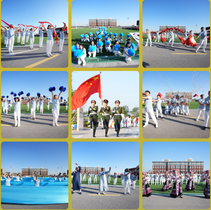晨曦初照,開幕式現(xiàn)場(chǎng)人聲鼎沸,熱鬧非凡,8支參賽隊(duì)伍邁著整齊的步伐,跟隨國(guó)旗、司旗、運(yùn)動(dòng)會(huì)會(huì)旗入場(chǎng),帶來(lái)各具特色的精彩表演。彩帶飄揚(yáng)、花團(tuán)簇簇,啦啦操與大合唱、彩扇舞與錦緞陣,形式各樣的開幕式表演將民族的、也將世界的文化凝結(jié)匯聚,展現(xiàn)出全球中偉人拼搏向上、自立自強(qiáng)的精神面貌,詮釋了“責(zé)任創(chuàng)新多元共贏”的精神內(nèi)核。