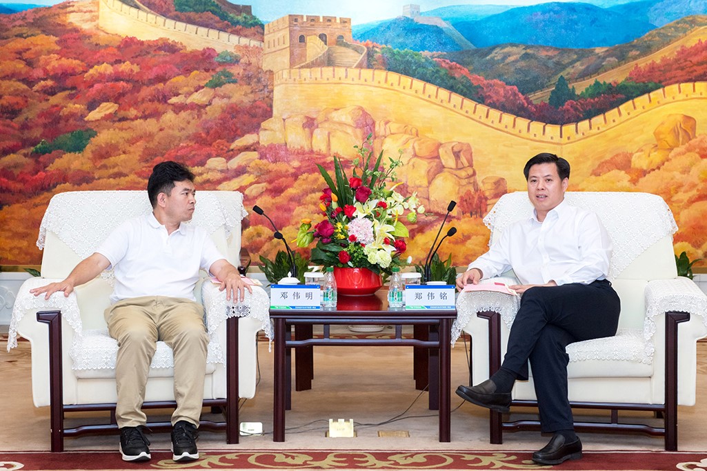 鄧偉明(左)與鄭偉銘進(jìn)行深入交流