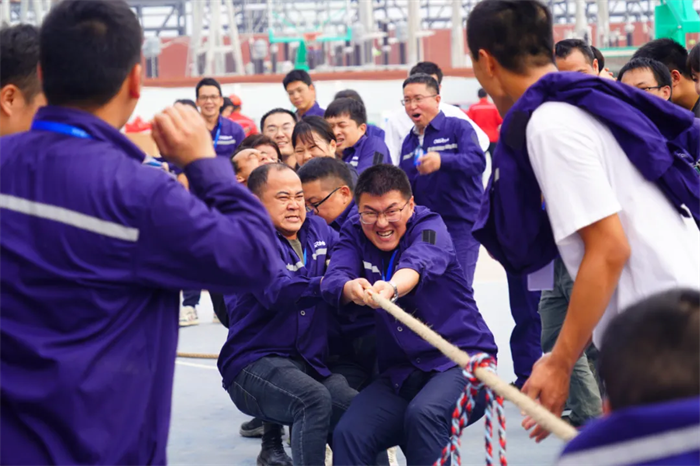 最先進行的拔河項目吸引了大批觀賽者,開始前,參賽隊員個個摩拳擦掌,鉚足了勁兒。隨著裁判哨聲令下,隊員紛紛使出洪荒之力,為“拔得頭籌”拼盡全力。最終,工程部拿下了該項目的第一名。