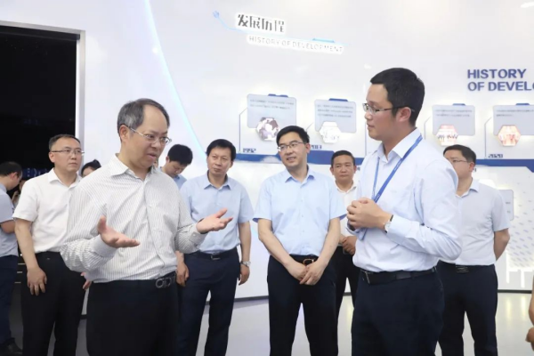 隨后,陶長海一行前往智能制造三元八車間參觀,了解了車間智能化和數字化作業(yè)現場,并通過大數據平臺實時查看了“人、機、料、法、環(huán)”的運轉情況、中偉自主研發(fā)的自動化生產設備情況,鳥瞰了中偉在貴州銅仁總部的原料廠區(qū)、材料廠區(qū)、環(huán)保廠區(qū)、高冰鎳項目的區(qū)域分布情況。