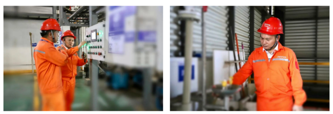 生產部:像釘子一樣扎根崗位,“咬定”生產目標不放松,保持“生產高溫”勁頭。盡管衣衫濕透,奮戰生產一線的員工手上依舊忙碌不停。做記錄、取樣、查看設備運轉情況。環境溫度高,但他們的士氣更高;生產任務重,但是他們的責任感更重,他們用實際行動詮釋了中偉人的敬業與擔當。