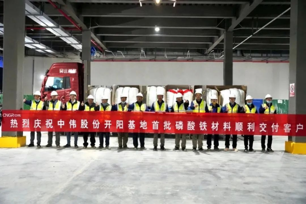 2022年12月5日,中偉首批磷酸鐵產品在開陽產業基地成功產出,宣告開陽年產20萬噸磷酸鐵項目首條產線順利實現投產。12月15日,第一批磷酸鐵合格品交付客戶,標志著中偉磷酸鐵產品實現規模化量產,公司邁入鎳系、鈷系、磷系三大主銷產品新時代。